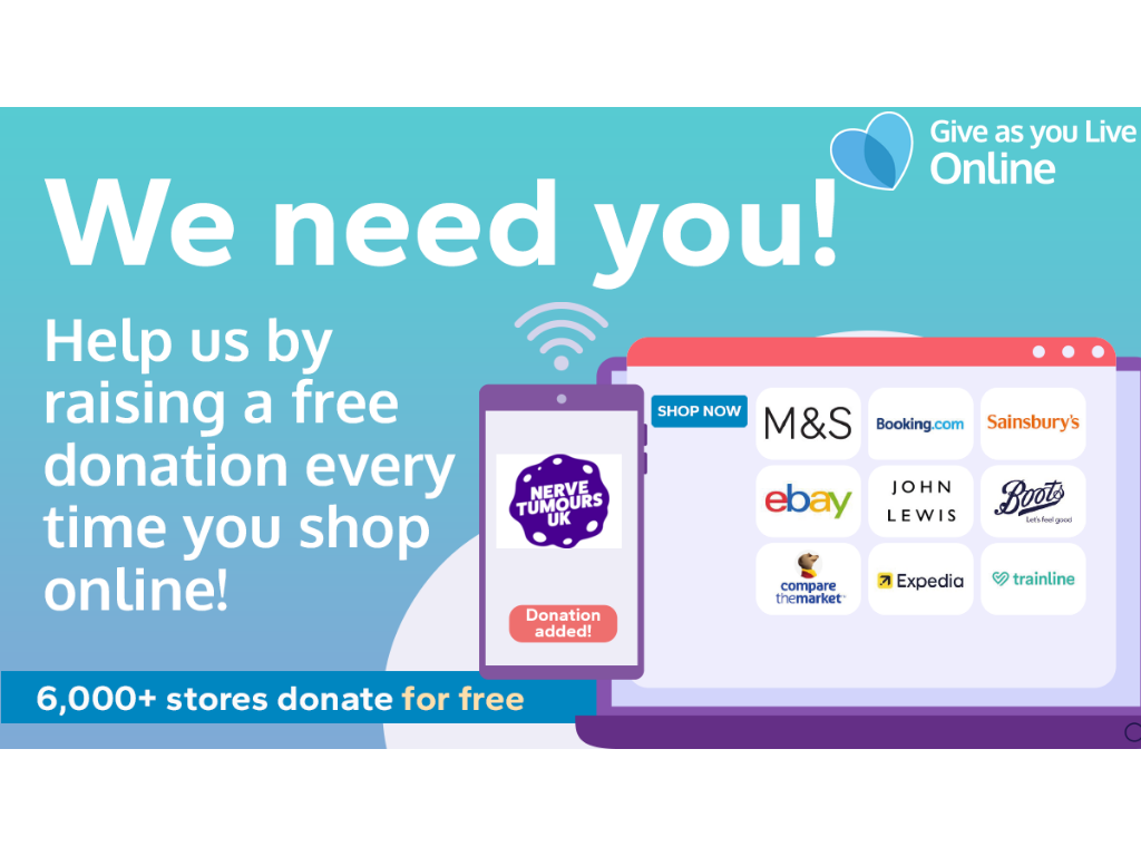 Did you know that whenever you shop online, you could be raising free donations for Nerve Tumours UK? easyfundraising has over 8,000 retailers on board ready to make a donation, with no hidden fees or extra costs!