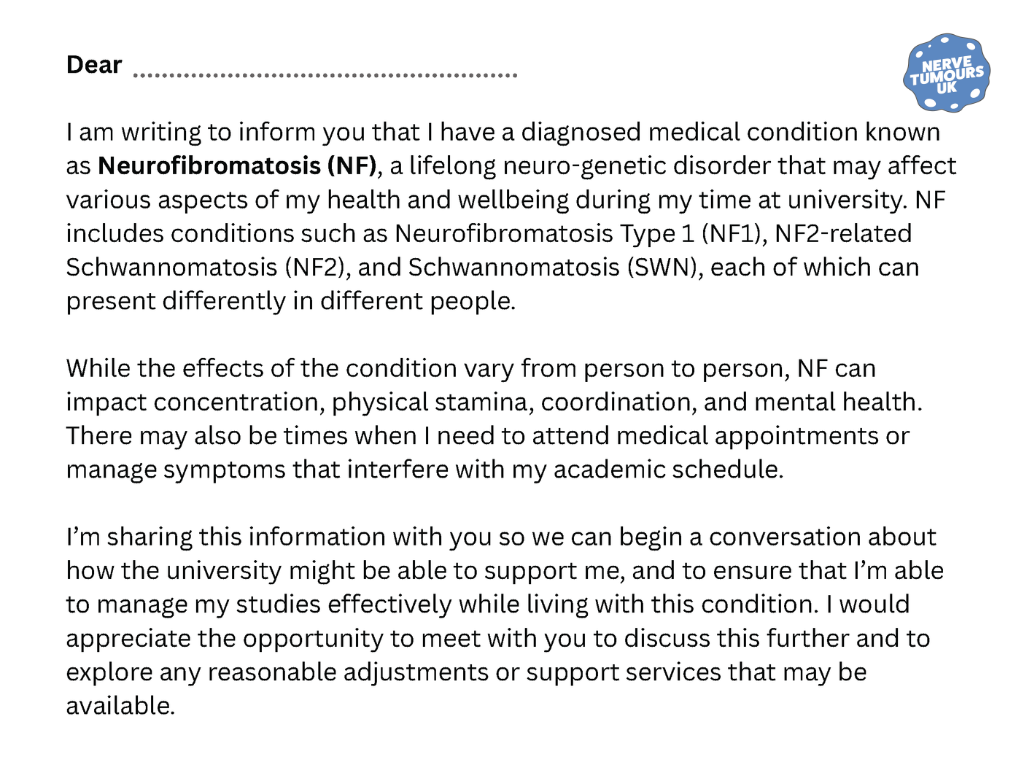 Download this letter to help communicate your condition and how it may affect your time at university. It’s a clear and respectful way to inform staff and open up a discussion about support and understanding.