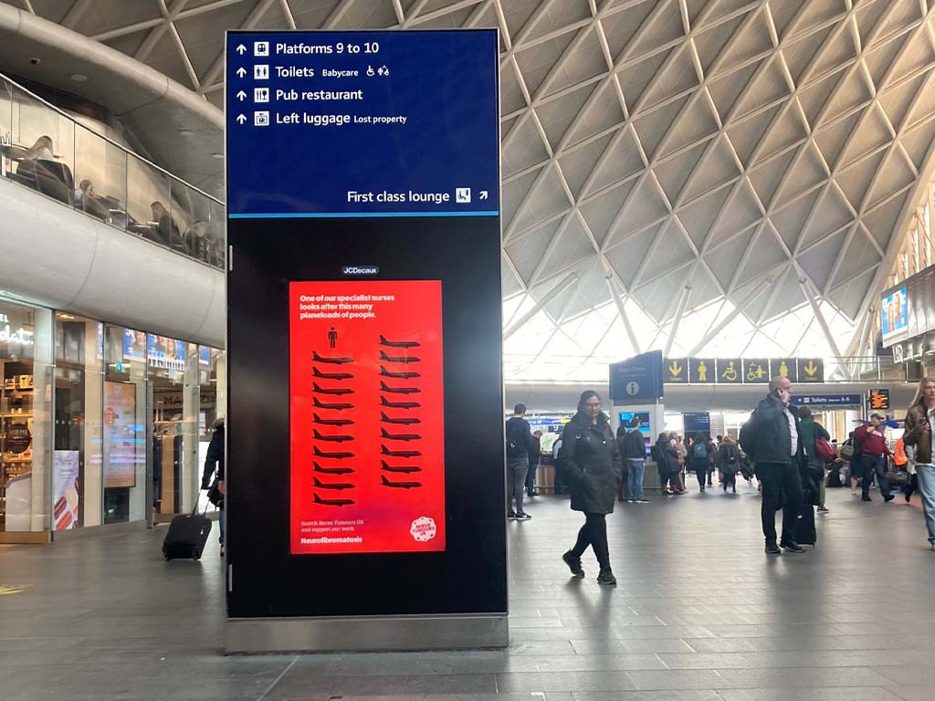 – Karen Cockburn, Charity Director"We have purposely launched the campaign at rail hubs, where footfall will allow maximum impact, enabling us to spread the message far and wide. Not only do we need to raise the profile of Neurofibromatosis amongst medical professionals, but we also need to let the public know that we are here to help, and about the support services that we can offer for both children and adults, who are diagnosed with the condition."