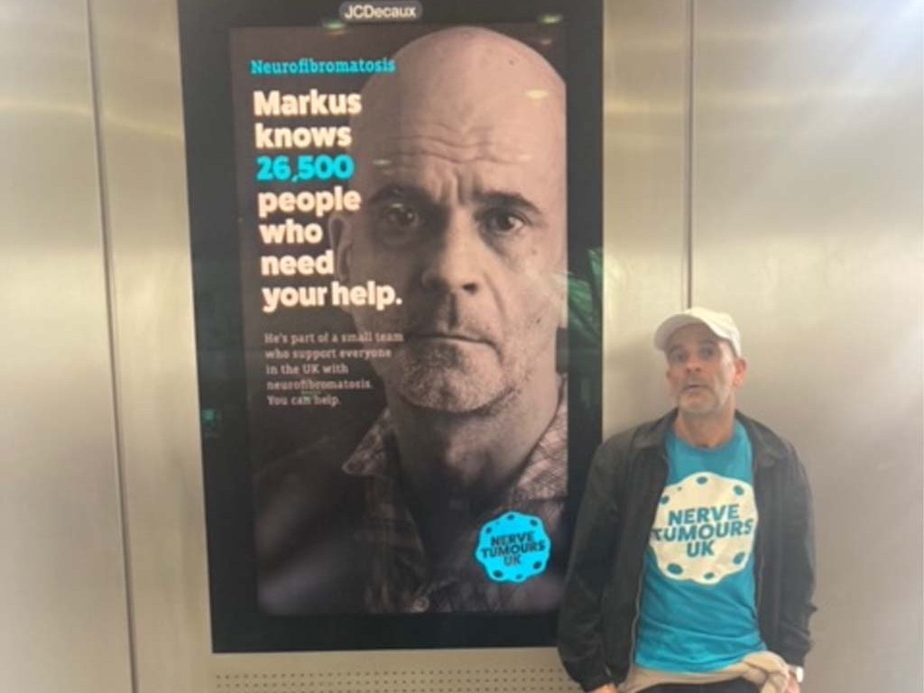 – David Ratcliffe, Catering Manager and NF Community Member"Over the years I have had lots of troublesome Neurofibromas removed, in some cases requiring general anaesthetic, and in one case resulting in a nasty post-operative infection. This has on different occasions, fallen under various clinical departments, from dermatologists, to neurologists to oncologists. Having access to a Specialist NF Nurse would have made this process a lot smoother and I feel I would have seen the right person in the right field. I have had various issues with joints over the years, connected to the hypermobility associated with NF1, so have seen lots of physios for treatment. Also of course, there is the reaction to the Neurofibromas all over my torso, from questions and sometimes rejection on dating sites, to more recently ‘Is that Monkeypox?’ I have learned to embrace my neurofibromas and celebrate the fact they are part of me. Coming up the escalators at Kings Cross station today, I was overjoyed to see attention being brought to Neurofibromatosis. I felt recognised."
