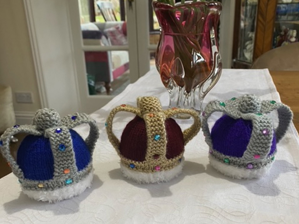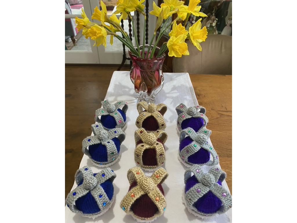 We knitted crowns, which also covers Terry’s Chocolate Oranges, to celebrate the coronation of Charles III.