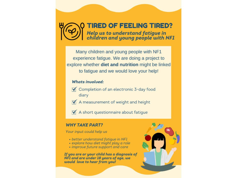 Many children and young people diagnosed with NF1 continuously feel tired, and so the team at St Mary's in Manchester headed by Dr. Grace Vassallo, have joined forces with Victoria Whiteley, Advanced Clinical Practitioner in Ketogenic Therapies at Royal Manchester Children's Hospital, to research whether diet and nutrition is linked to fatigue.
