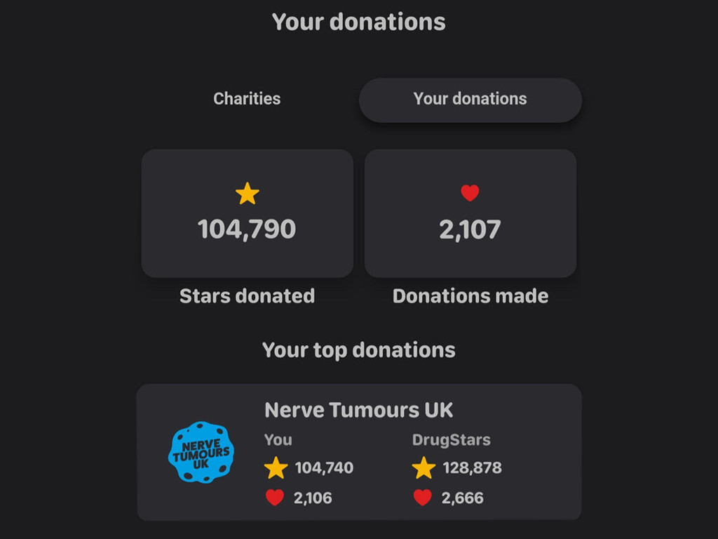 With every medication she took, she gained one Star, this meant a 1p donation for Nerve Tumours UK, which over a year culminated to a significant amount