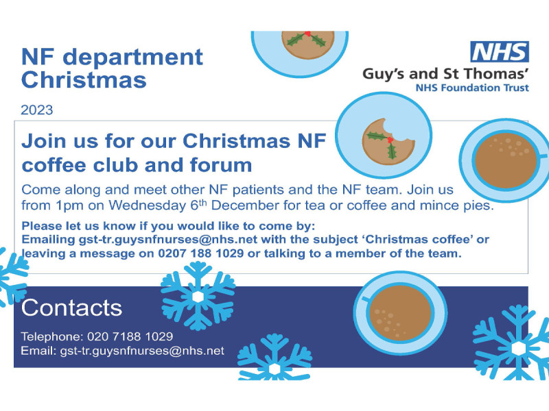 If you have any questions about these coffee afternoons, please contact the NF team at Guy's via email: gst-tr.guysnfnurses@nhs.net