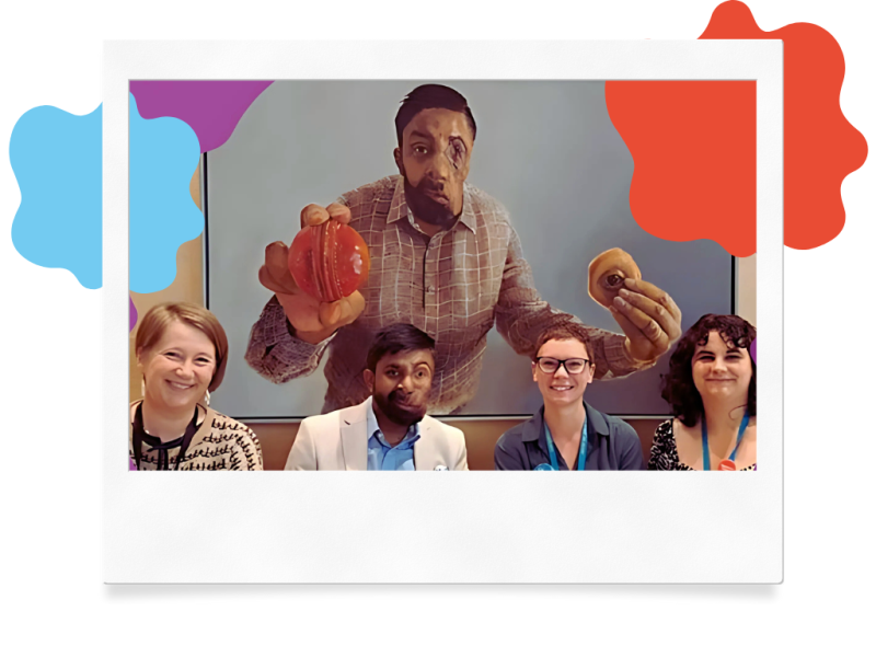 Amit, who was a panelist at the conference, was actively involved in earlier livestream portrait planning over Zoom, having conversations with Dr. Maia Thornton from CAR, and the artist to explore his experience around being seen, how he chooses to reveal or conceal his visible difference, which elements of his life story might feature, and their combined hopes for the finished portrait.