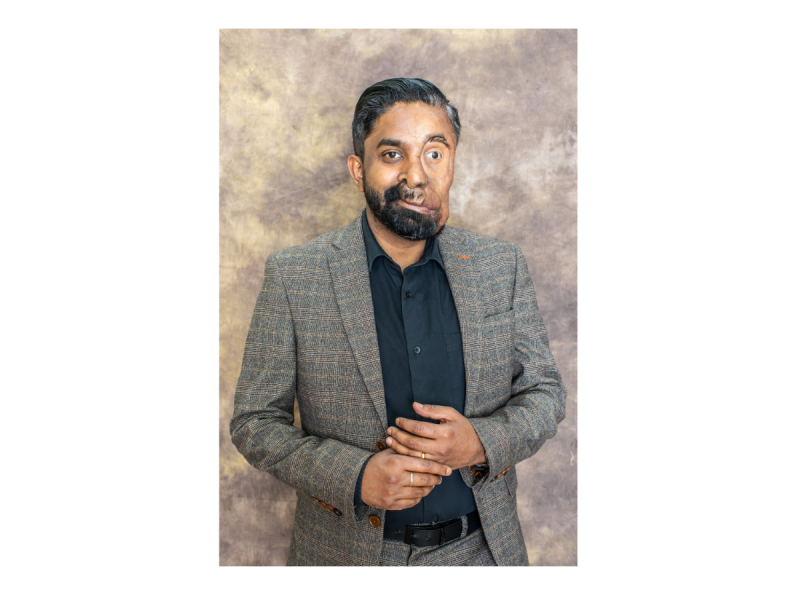 Gail said, "I hope to make work that challenges conditioning around appearance, particularly the damaging beauty standards that are normalised in society. I feel Amit has a very strong voice in this field, and the ideal 'up for it' personality for a portrait sitter. We were very aligned in our determination to convey his lived experience in the portrait. I hope it invites the viewer to consider their own response to the Visibly Different Community generally, and the NF Community, in particular."