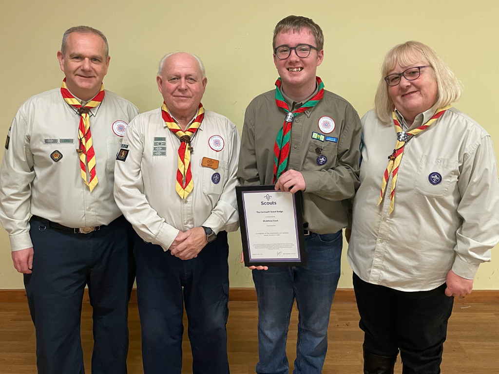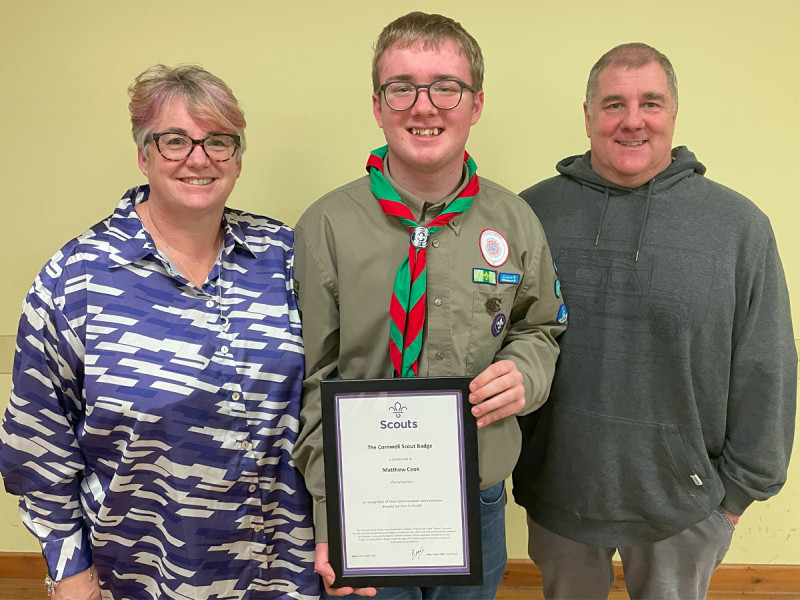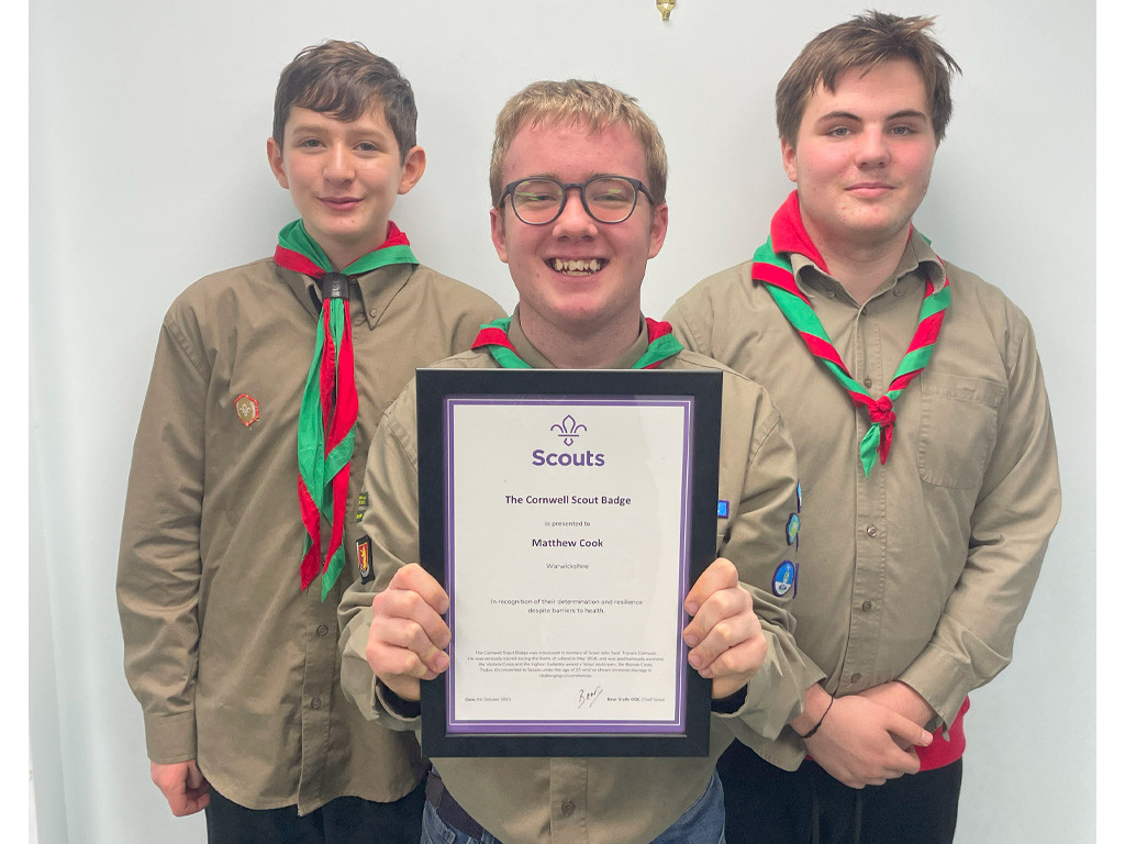 Matthew, a dedicated Scout, has been awarded the prestigious Cornwell Scout Badge for his outstanding courage, determination, and devotion to scouting, in the face of significant health challenges, the first occurrence of a Cornwell award in Warwickshire.