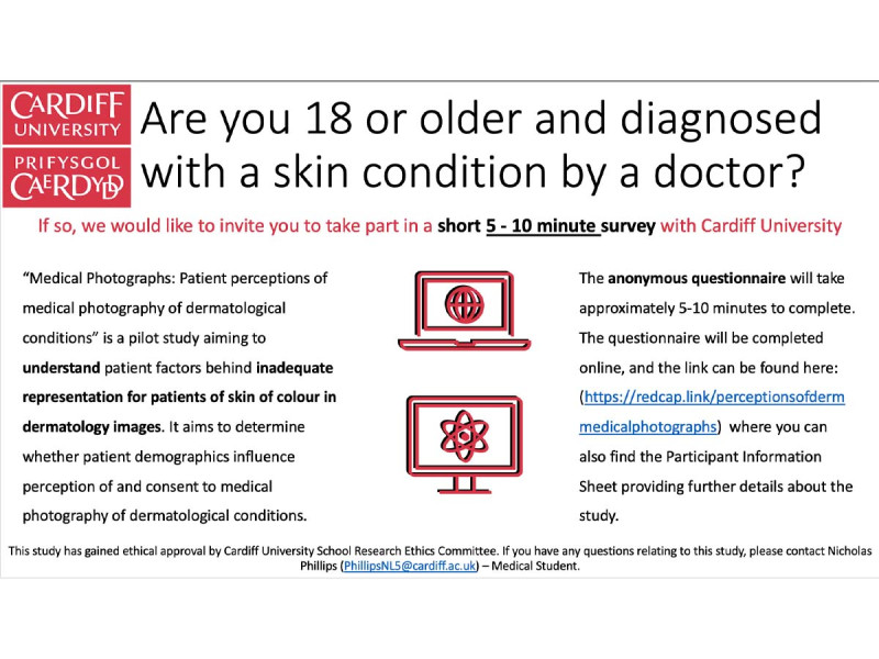 Nicholas is a 4th Year Medical Student at Cardiff University, and with his supervisor Dr Jui Vyas, he is currently working on a project titled “Medical Photographs: Patient perceptions of medical photography of dermatological conditions”.