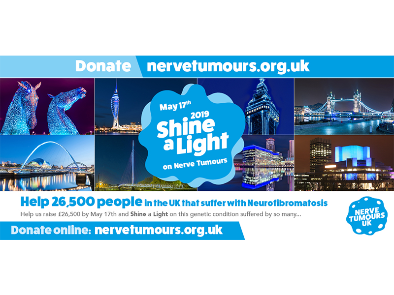 World Neurofibromatosis Awareness Day, on Friday 17 May, will be marked by hundreds of buildings around the world being illuminated with blue light and the UK is playing a major role with 104 buildings (and counting) taking part. Sites such as the Blackpool Tower, the BBC Media City (Salford) and the National Theatre (London) will all go blue on the evening of Friday 17 May.