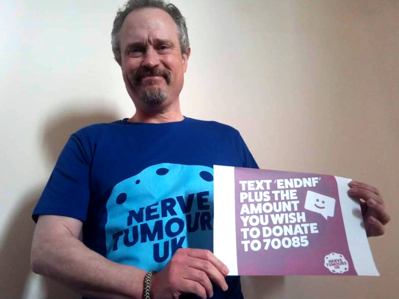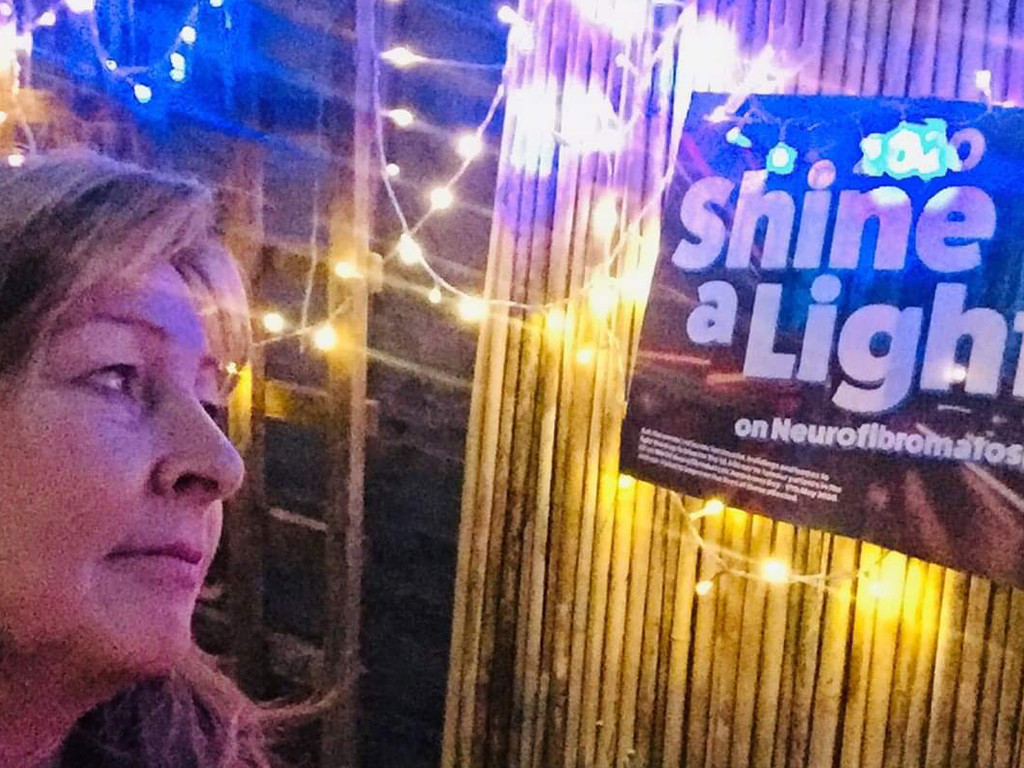 Firstly, I’d like to mention David Perks, who is an actor from the BBC daytime soap Doctors. He started to raise awareness of NF when my Mom asked him a few years back. Since then without being asked he takes a picture of himself holding the ‘Shine a Light poster’ and puts it on his social media pages. This year he proudly wore a Nerve Tumours tee-shirt.